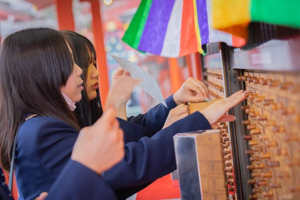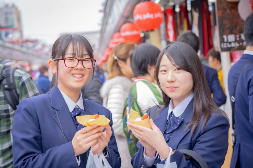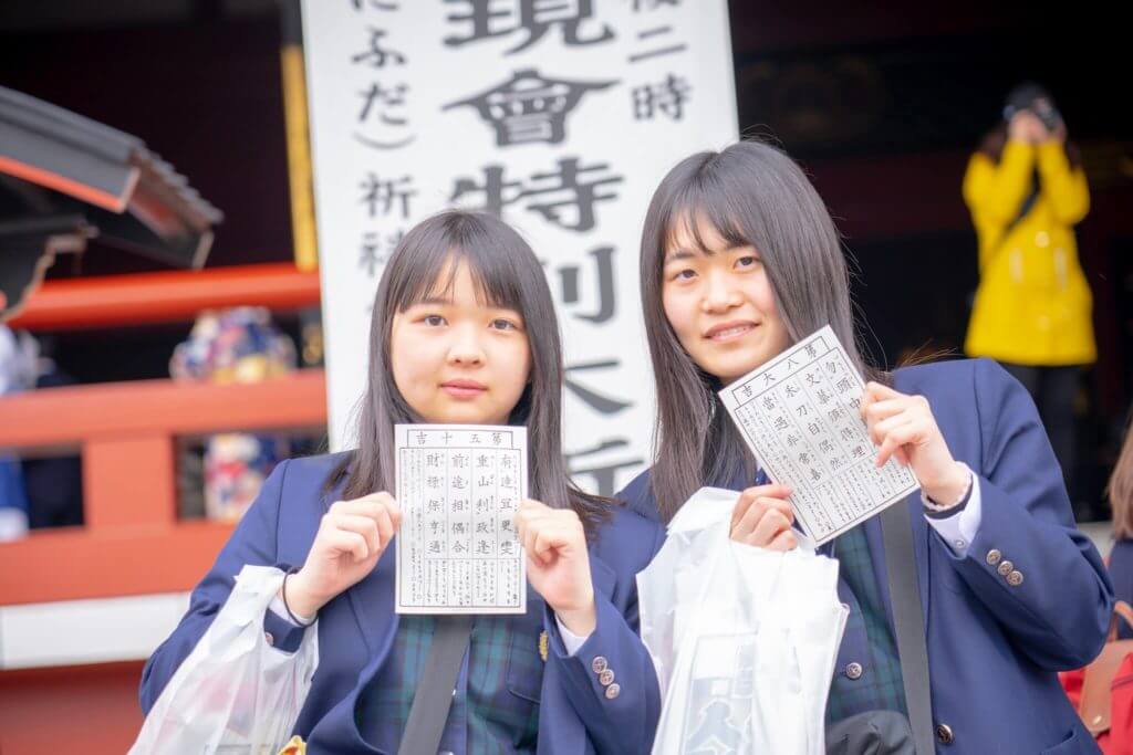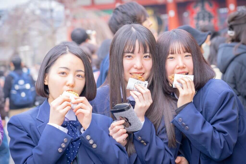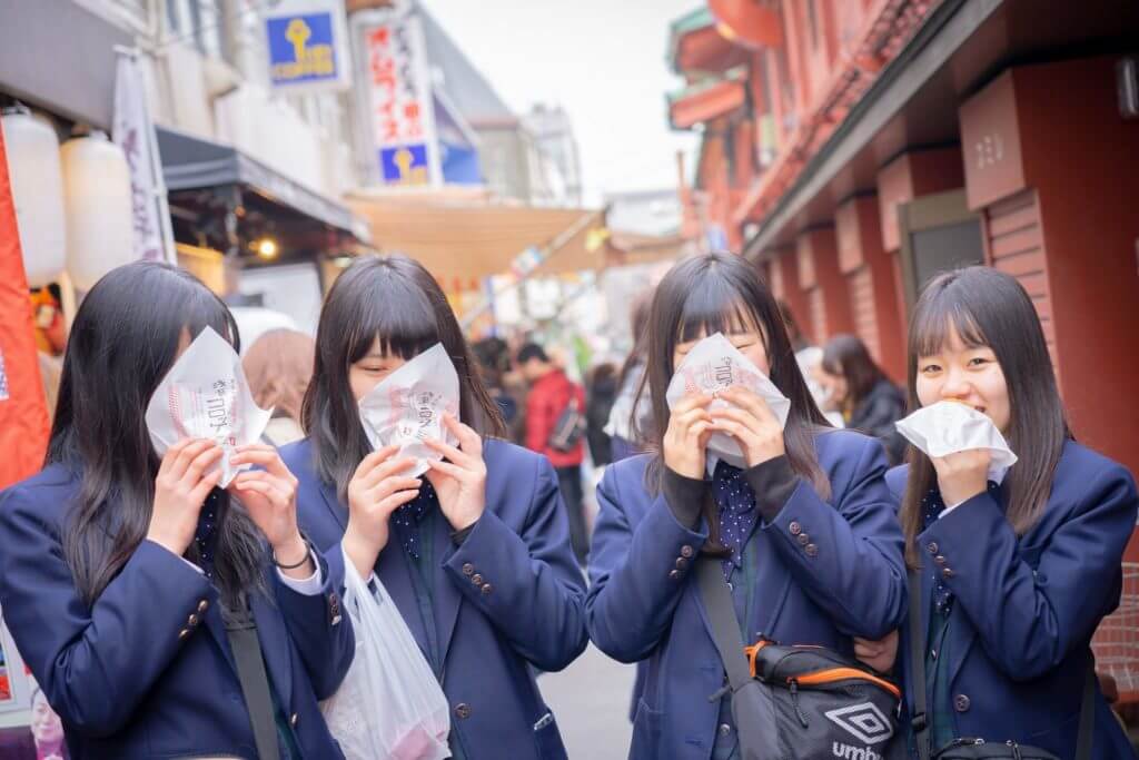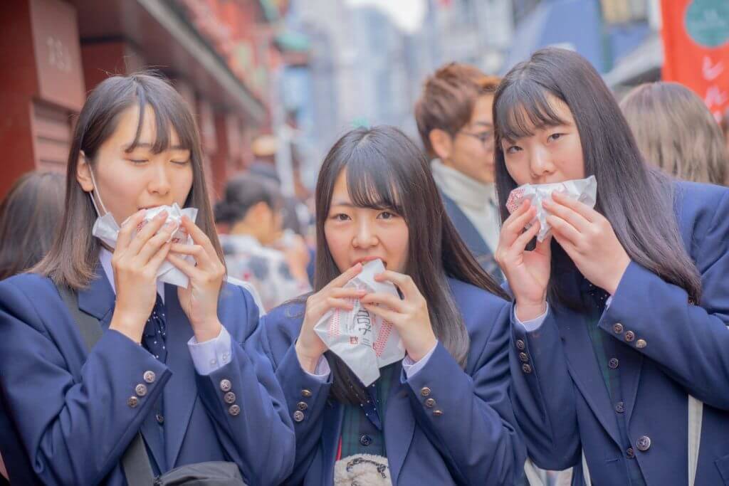 本堂でお参りをし、おみくじを引いたり、仲見世で人形焼や浅草メンチ、話題の花月堂のメロンパンを食べ歩いたり、思い思いの時間を過ごしていました。