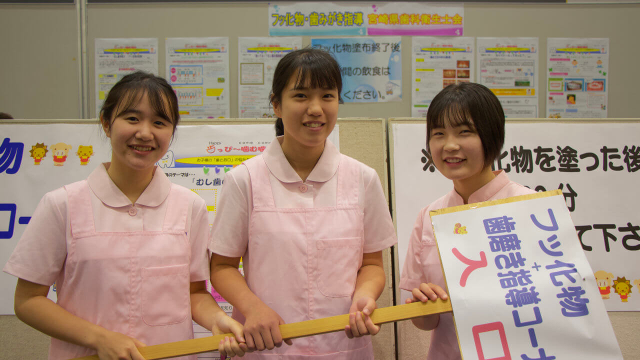 毎年、宮交シティ紫陽花ホールにて開催されます「歯と口の健康フェスティバル2019」に、本校くらしの科学科医療歯科コース3年生がボランティアスタッフとして参加しました。