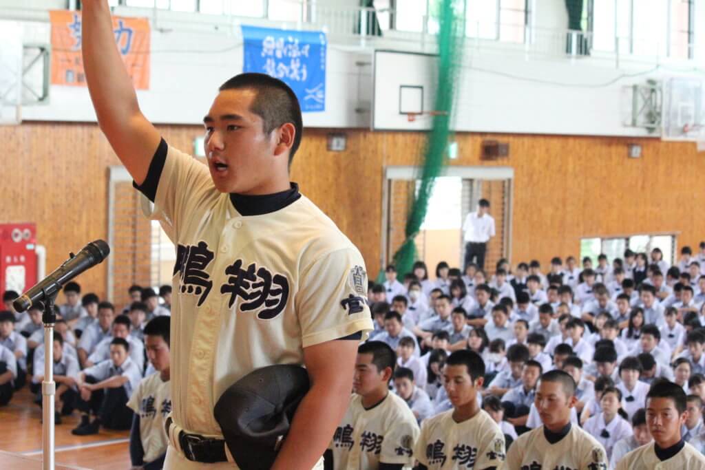 学校行事 野球部 壮行式 yamakawa 2019-07-02 6月24日(月)に、野球部の壮行式を行いました。 ユニフォーム姿で入場した球児達は、主将の選手宣誓、川崎校長先生や生徒会長の激励の言葉を頂きました。 チームで掲げた目標に向かって、一つでも多くの勝利を目指し、最後の一瞬まで白球を追いかけ続ます。 鵬翔高等学校野球部の初戦は、 SOKKENスタジアムにて、7月7日(日) 11時30分から試合開始予定です。 壮行式 甲子園 野球部 ABOUT ME yamakawa 【鵬翔高等学校 教職員】教科:数学、入試広報部、ダンス部顧問、よさこい同好会顧問