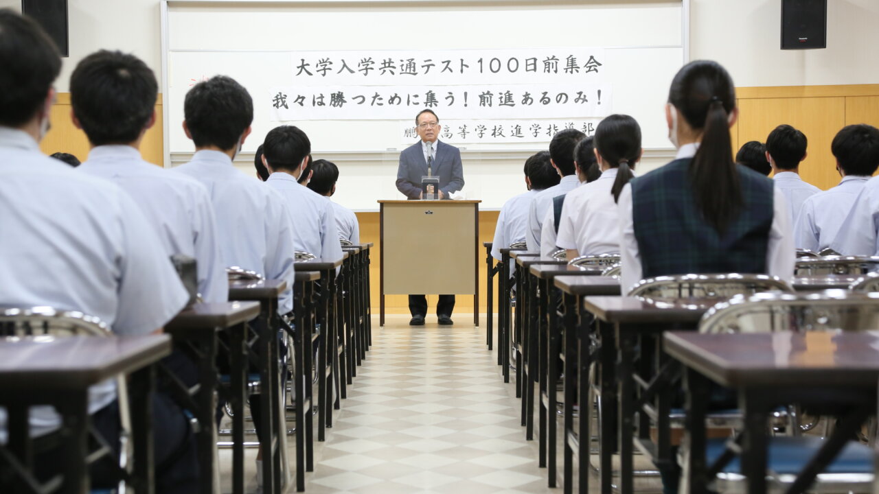 10月6日(水)、特進英数科3年生が参加して、大学入試共通テスト100日前集会を行いました。