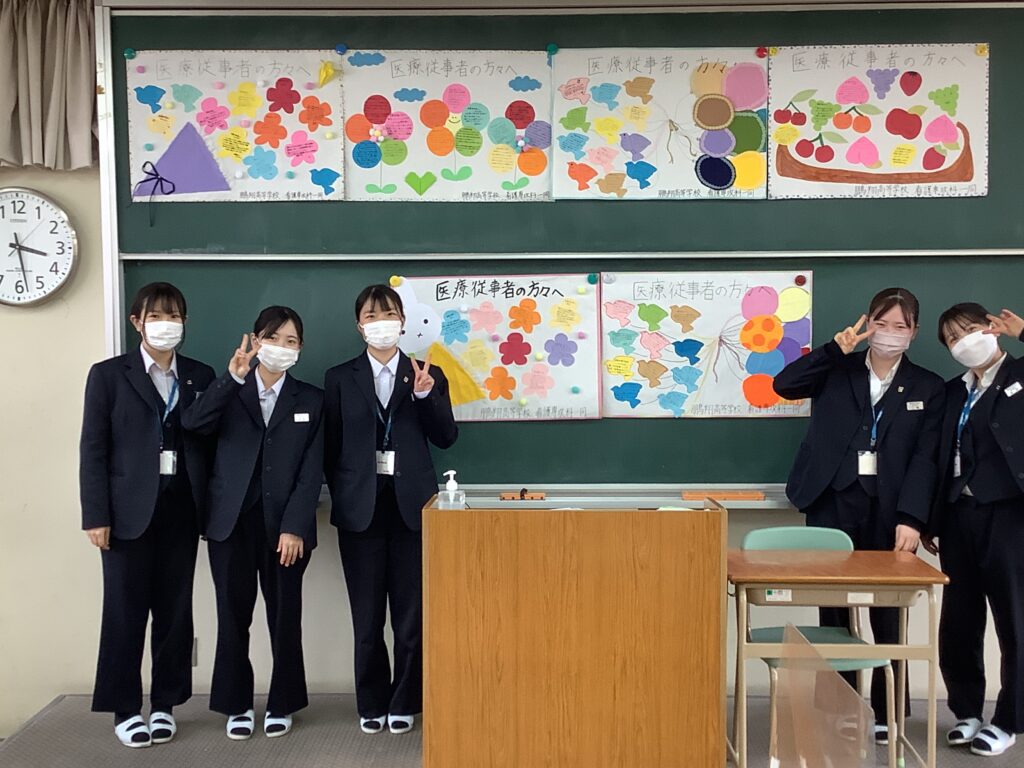 学生達は、上記活動以外にも宮崎市内で懸命に感染対策に取り組まれている医療従事者の皆様へのエールメッセージボード作成や校内での感染予防ポスター掲示による啓蒙活動も行っています。
