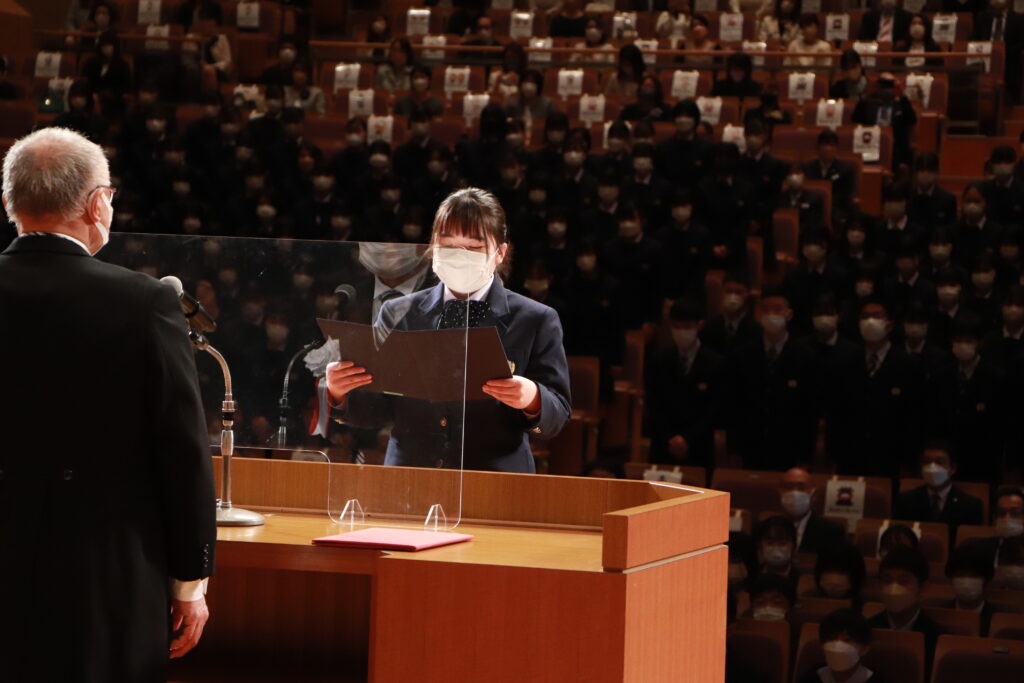 全員の入学が許可され、新高校1年生・新専攻科1年生の代表生徒が力強く新入生誓いの言葉を行い、入学生全員の気持ちを伝えてくれました。