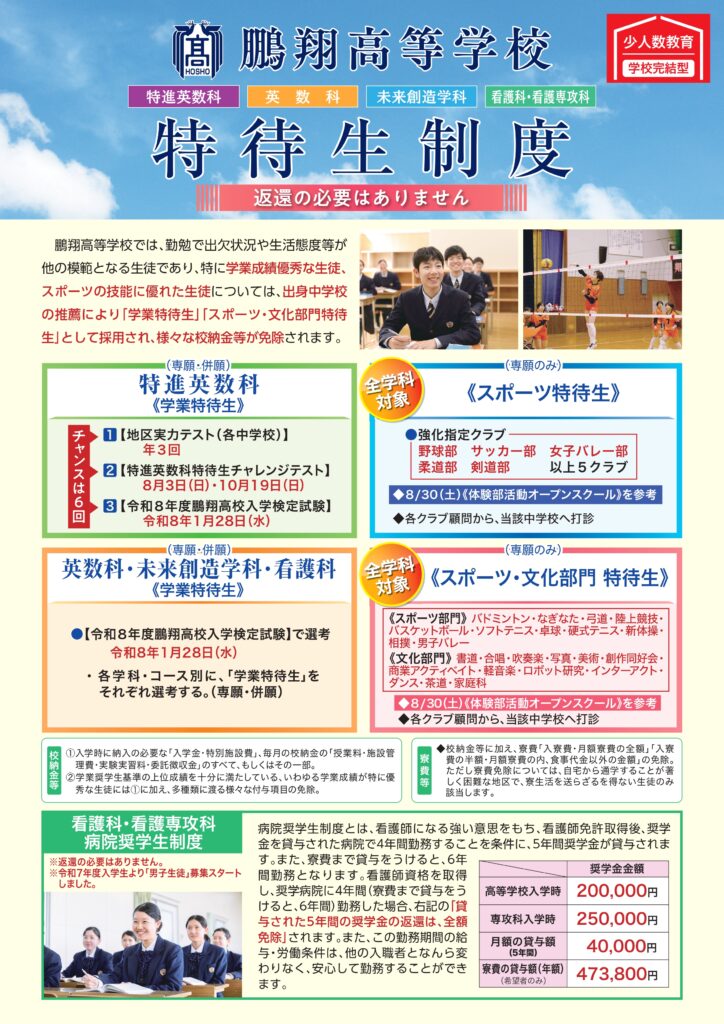 お知らせ 入試 Web出願ページ 2025-12-01 事務 永吉 http://www.hosho.ed.jp/wp-content/uploads/2021/03/100thlogo2021300px.png 鵬翔高等学校