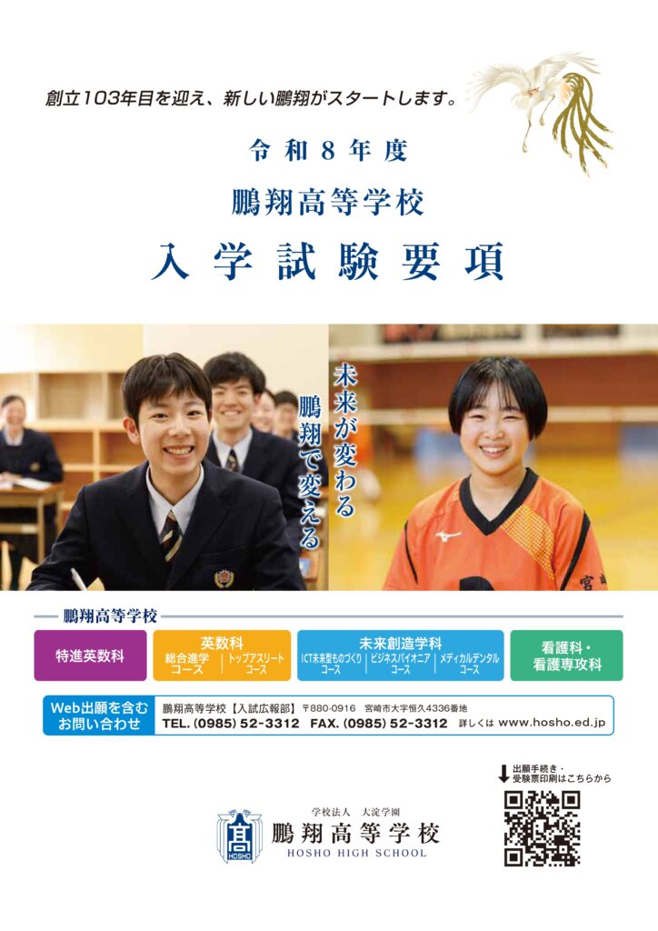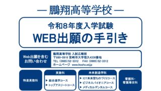 お知らせ 令和8年度入学試験 Web出願の手引き 2025-10-18 事務 永吉 http://www.hosho.ed.jp/wp-content/uploads/2021/03/100thlogo2021300px.png 鵬翔高等学校