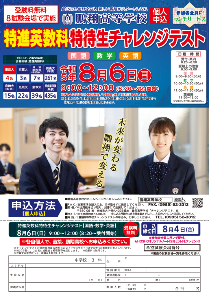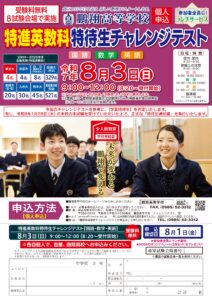 特進英数科 特待生チャレンジテスト 8/3(日)