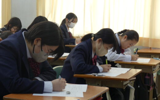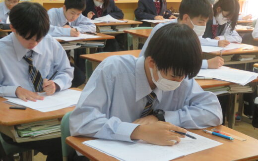 今日は定期考査の最終日でした。それぞれが、朝の時間や休み時間を使ってしっかりと復習をしてテストに臨みました。 時間いっぱい考え、今まで学習してきたことを出し切りました。結果が返ってくるのがとても楽しみですね。 テストは今