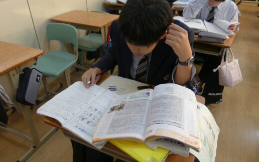 第4回定期考査2日目です。昨日より気温が下がった朝でしたが、感染症予防のため窓を開け喚起を十分に行っています。自学の時間に教室を回ってみると、ノートにたくさんの書き込みをしていたり、シートで答えを確認したりと、定期考査に