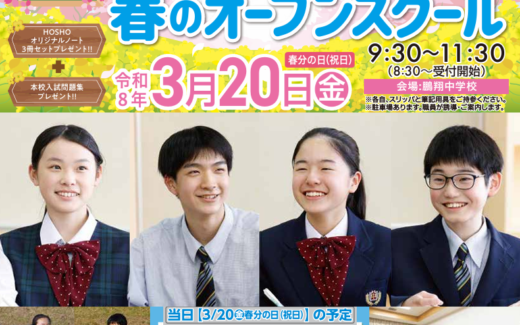 令和8年3月20日(金・祝)に現在の小学5年生を対象としました「春のオープンスクール」を実施します。 今回のオープンスクールでは、「学校紹介」と「部活動紹介&在校生交流」に加えて、学校見学も設定しています。 ぜひ、今回