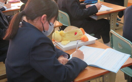 第5回定期考査まで、残り僅かとなりました。授業時間や休み時間など、多くの場面で黙々と学習に取り組む様子が見られました。 J2の授業では、テスト範囲の内容を復習し、問題集や教科書を見返していました。 同じ時間、J3の