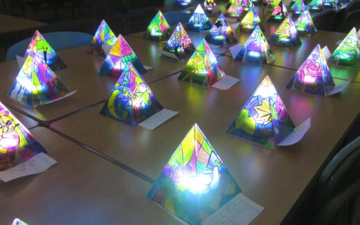 本日7時間目、J2Bは美術の時間に、ステンドグラスの作成を行いました。 生徒たちは、昨年秋頃からステンドグラスの作成に取り組んできました。カッターを慎重に使い、それぞれが目指す完成形に近づくことができるよう、作業を行