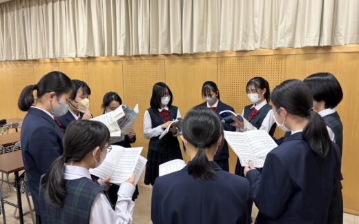 中学校課程修了式まで残り10日となり、各学年、合唱練習が本格化しています。本日は、J1生とJ2生の合同練習が行われました。 パート別に分かれ、J2生が率いながら練習を行う姿は、とても頼もしいものでした。合唱に学年の壁