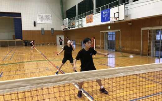 本日、バドミントン部(男子)の坂本蒼晋君と鏡創一君のペア、ダブルスが県大会に出場しています。前日の練習風景を紹介します。いつもの練習の「ワン・ツーワン・ツー」をイメージして得点を重ねましょう。部員みんなが応援しています