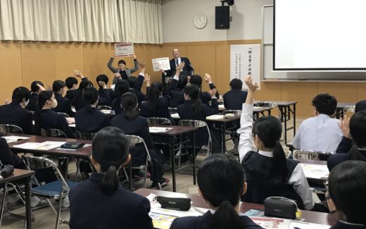 本日は、公正取引委員会の九州事務所から総務課 課長の伊藤 雅弘様と内閣府事務官の三好 唯希様をお招きし、J3生を対象に、「独占禁止法教室」を行いました。 J3生は、最初は緊張した様子でしたが、徐々に慣れていき、「立入検