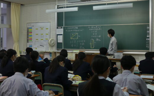 朝課外の様子です。生徒たちは毎朝7時40分から朝課外に挑んでいます。J1生は国語、数学、英語、小論文、J2生は理科、J3生は物理基礎がこの教科に加えられます。 授業の途中でお友達と解答の確認をし合ったり、先生に一人ずつ確