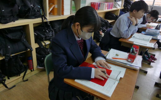 定期考査3日目です。3日目は体力的、精神的に一番大変な時ではないかと思います。今日の時間割は1限目自学、2限目英語、3限目音楽、4限目社会、5.6限自学です。1.5.6限の自学の様子を見てみました。 自学の時間をしっかり