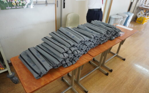 ファミリーという学年の壁を越えたグループで清掃活動を行います。玄関前では協力し合って大きなマットのほこりを落としていました。トイレや手洗い場、教室など自分たちの清掃場所を責任をもって清掃しています。学校がきれいになると、