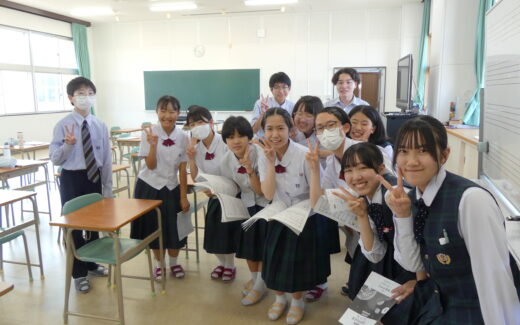 J3の英語の授業で七夕に向けて、短冊に英語で願い事を書いていました。すぐに願い事が見つかる生徒や、たくさんありすぎて決めきれない生徒がいましたが、辞書で単語を探したり、文法を考えながら楽しそうに書いていました。楽しみなが