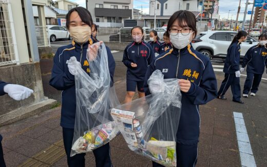 普段、生徒たちが利用する通学路や公共施設、学校周辺地域への感謝の気持ちを行動で表すために、宮交シティ・南宮崎駅周辺、宮崎産業経営大学までのルート、八重川周辺をファミリー班で清掃しました。 ファミリー班の数は全部で13