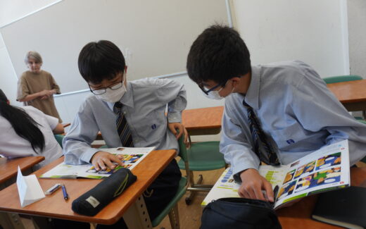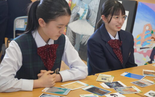 J2Bの美術の授業の様子を、本日はお届けします。生徒たちは、いくつかのグループに分かれて、「国立美術館アートカード」という教材を使用し、ゲーム形式を取り入れながら、楽しく美術作品を鑑賞する基本姿勢を身に付けていました。