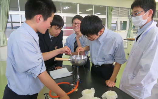 今日は部活動日です。どの部活動も楽しそうに活動をしていました。その中から、今日はサイエンス部の様子をお届けします。サイエンス部では、色々な実験などを通して、科学的なことを体験しています。今日は、砂糖と重曹の化学変化を利用