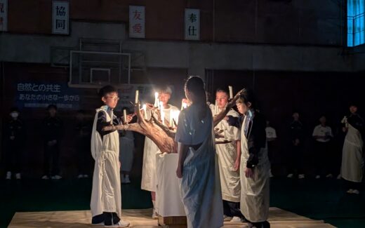 強歩会のあとは、頭を使う活動を行いました。みんなで集まってクロスワードに挑戦です。知らない言葉もありましたが、協力しながら頑張っていました。 そのあとは、夕べの集いです。夕べの言葉を吉ノ薗さんが述べてくれました。 そして