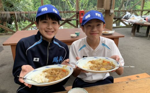 最後は待ちに待った野外炊飯です。災害カレーを作ります✨説明を聞き、調理スタート!班ごとに協力しながら、進めていました。 ハプニングがあった班もありましたが、どの班も美味しいカレーが出来ました✨ 片付けまでしっかり行い、最