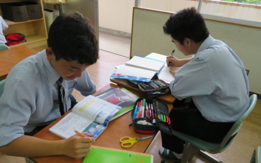 明日は参観日です。普段通りの授業を様子を見ていただけたらと思います。 今日もどの学年も一生懸命授業を受けていました!HOSHOタイムの小テストにも真剣に取り組み、毎日頑張っています。1年生も本格的に始まった学校生活を楽し