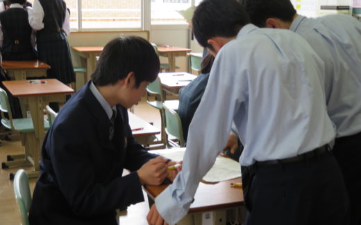 英会話の授業も習熟度に分かれて行われています。英語だけの授業に戸惑うこともありますが、友達と話をしながら、一生懸命取り組んでいます。 第1回実用英語技能検定試験(1次)も6月2日(日)に行われます。受験をする皆さんは合格