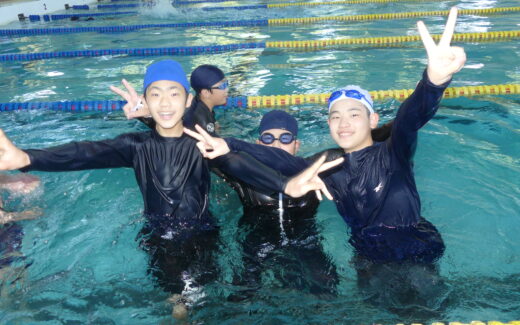 今日は、男子の水泳の授業と女子が体育大会の練習が行われました。 バスで会場まで移動し、準備をしてスタート!特に男子の水泳の授業は、楽しみにしている生徒が多かったので、行くときから多くの笑顔が見られました。 女子は体育大会