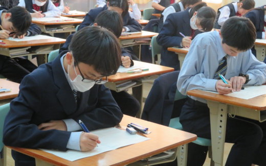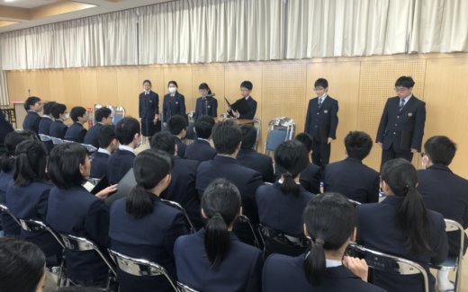 今日はJ3生が修了証書授与式の練習を行いました。去年の先輩方のビデオを見ながら、動きを確認し、その後、自分たちも実際に動いて確認をしました。 本番までしっかり練習をして、学年全員で成長した姿を見せたいと思います!