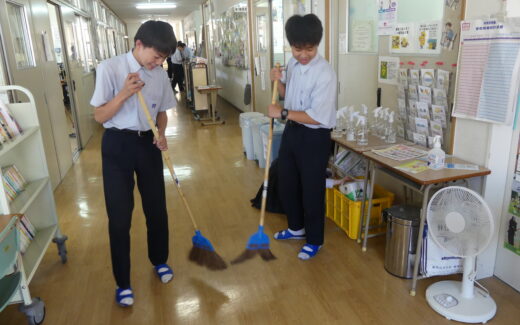 本日は定期考査最終日。3日間のテスト期間を終えて、子どもたちは清掃活動に取り組みます。 日々使用している教室や廊下がきれいな状況であり続けるのは皆さんのおかげです。テスト期間は多くの生徒が朝早くから遅くまで教室や演習