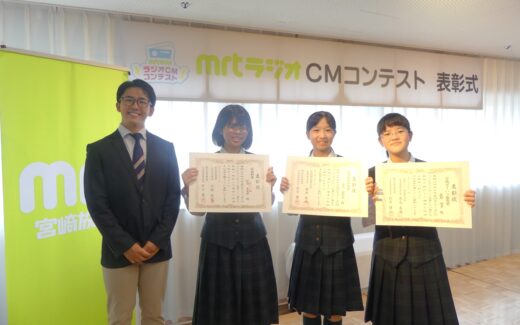 10月11日(土)に第3回「MRTラジオCMコンテスト」の表彰式が行われ、本校より3名が出席・受賞しました。その様子を写真にてお伝えします。 加治さん、山元さん、蕨野さんの3名は今回「スポンサー賞」を受賞しました。