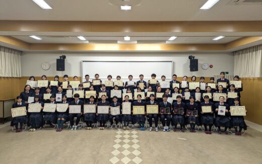 11月21日(金)に「第63回中学生作文コンクール」の表彰式を行いました。表彰に際しまして、一般社団法人生命保険協会宮崎県協会事務局長:権田学様にご来訪いただきました。 毎年、夏休みの課題の一つとして全校生徒で取り組