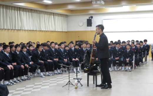 本日は、ギタリストの大萩康司さんがご講演をしてくださいました。 講演では、ギターの演奏だけではなく、ギターとの出会いや、緊張するときに行うルーティンなどもお話してくださいました。 大萩さんに質疑応答の場を設けていただ