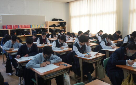 定期考査が終わり、通常授業が続いています。音楽の授業では、来週の修了証書授与式に向けて各学年、歌の練習が始まっています。 今日はJ1生の練習を覗いてきました。今日はパートごとに集まって音程の確認をしていました。 J3