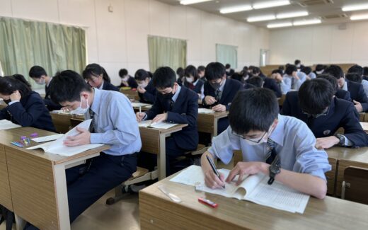 本日、J1・J2生は中高一貫模試、J3生は高1模試を受験しました。今年度最後となる対外模試です。朝から参考書を広げ確認をする姿などが見られました。 対外模試は学校の中だけでなく、多くの学生が受験します。学校の中だけで