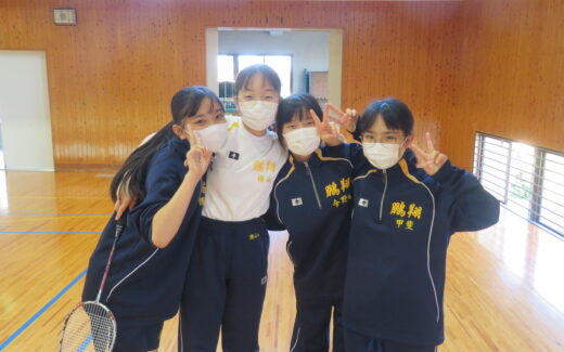 本日6限目、J3生は体育の授業でバドミントンをしていました。準備運動後、試合スタートです! タイマーの合図で対戦相手を変え、色々な生徒と試合をしていました。男女のダブルスがあったり、シングルスで真剣勝負をしたりしてい