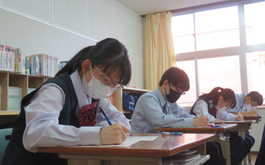 本日、第2回日本能力漢字能力検定試験を全員受検しました。年に3回実施される漢字検定のうち、1回を鵬翔中学校では毎年全員受検をしています。生徒たちは毎週の漢字テストや放課後学習の時間等に参考書を広げ、合格に向けて学習を積