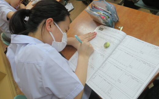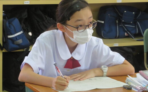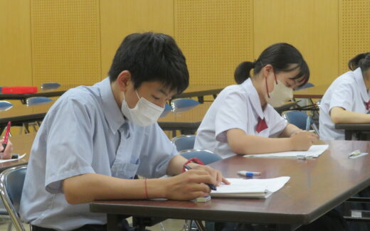 現在J3生の数学は、高校分野の二次関数を学習しています。J3数学標準クラスは、自分で解いた解答をタブレットで送り、みんなで共有をしていました。 J2英語は、テスト返却が行われていました。 明日、J2生は水辺調査を実