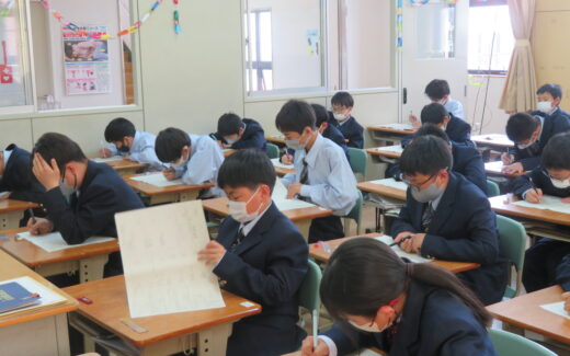 毎日お昼休みのあとは、15分間の清掃を行います。静かに黙々と清掃に取り組みます。 各教室はもちろん、事務室前や中庭、多目的ホール等も中学生が担当しています。 鵬翔生全員で清掃に取り組み、きれいな学び舎で勉学や部活動