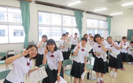 放課後の中学棟は、放課後学習後帰る時間まで友人とおしゃべりを楽しんでいる生徒、教室で黙々と学習をしている生徒、掃除をしている生徒、わからない問題を先生に質問している生徒など過ごし方は様々です。 カメラに気づくと、にこに
