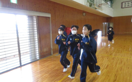 明日のマラソン大会に向けて、J1生は最後の時間走に挑戦していました。この写真は、10分間走の様子です。 明日のマラソン大会は、青島トロピカルロードで行います。女子のスタートは、10時10分。男子スタートが、10時35
