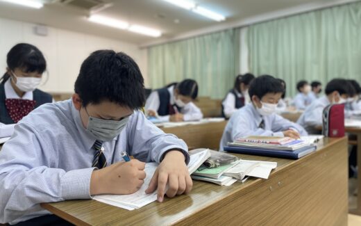 本日、第2回特待生チャレンジテスト&学校説明会を実施しました。 本日の司会進行をJ1A河野愛海さん(恒久小出身)、J2B谷口陽音さん(広瀬小出身)の2人が行ってくれました。本日のチャンレンジテストの実施にあたり、多く