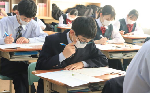 本日、J3生がベネッセ総合学力テストを受験しました。普段の定期考査とは異なり、1つの教科のテストが60分を超えるものでしたが、鵬翔中学校最上級生として、最後まで一生懸命、問題と向き合っていました。 今年度から、高校生