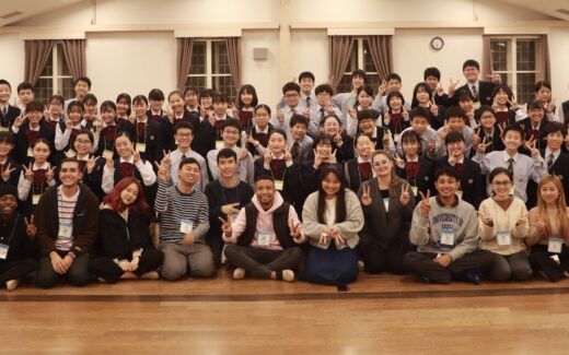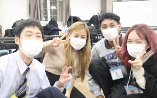 夕食が終わった生徒達は、グローバルリーダー達との交流会がありました。こちらからは「だるまさんがころんだ」を日本の遊びとして英語で紹介しました。実際に、グローバルリーダーと各班の班長で行った「だるまさんがころんだ」は大盛