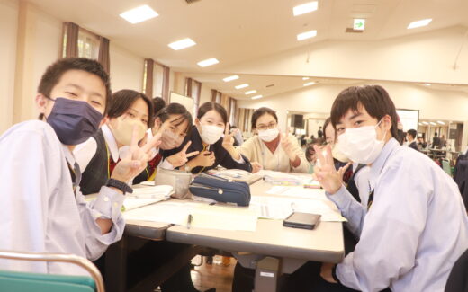 グローバルリーダーと行う最後の活動です。自分達が考えた1分間スピーチを2グループ合同で発表しました。昨日から英語に触れ続けている生徒達のスピーチはどれも素晴らしいものでした。 スピーチの後は、活動の振り返りシートを書