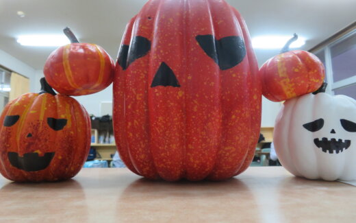 本日は部活動日でした。定期考査後の部活動でどの部活動も楽しく活動したようです。ESS部ではジャック・オー・ランタンを作りました。今年はカボチャの置物で作成しました。それぞれがデザインを考えました。 個性溢れる可愛いジ