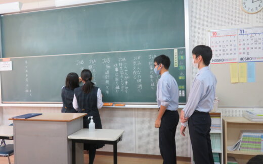 土曜日3・4限目は、総合学習の時間です。各学級いろんな活動をしていました。 J1-Aは、より良いクラスにするために、クラスの課題について考えていました。まとめたものを後日発表するようです。J1-Bは、生きる力をテーマに