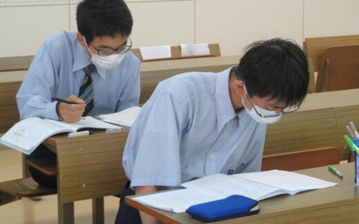 今日から第3回定期考査が始まりました。計画的にテスト勉強に取り組めたでしょうか。 放課後も各教室では、明日のテストに向けて、問題集やノートを広げて黙々と勉強している姿や、友人と分からない問題を教えあっている姿、先生に