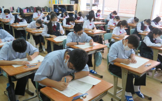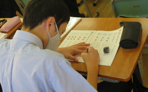 本日、第2回日本漢字能力検定試験を全員受検しました。注意事項を聞いたのち、開始の合図と同時に一斉に筆が走ります。 国語の授業や休み時間、放課後の時間を利用して、全員が合格を目指し勉強していました。結果が楽しみですね!